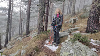 Tras dar cuenta de los bocadillos, nos pusimos de nuevo en marcha para regresar al puerto de Navacerrada. Unos lo hicieron continuando por el Camino Schmid, otros preferimos seguir la senda que bordea la Umbría de Siete Picos, mucho más agreste, aunque de mayor dificultad, con tramos en los que hay que estar atentos psra no perder el borroso sendero.